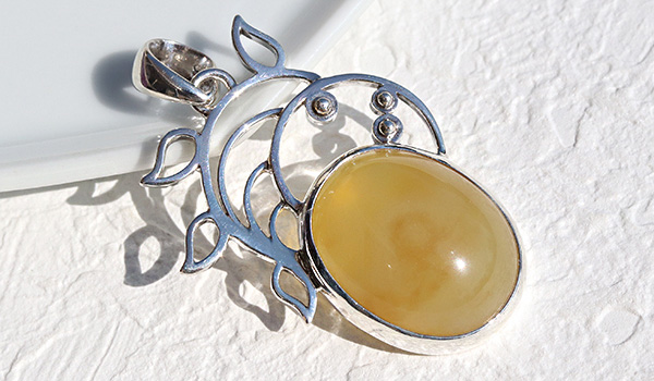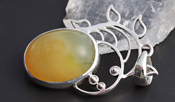 本当に美しいイエローオパールのルースを使用したペンダントです。