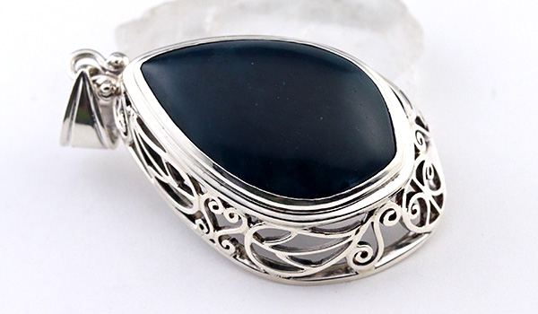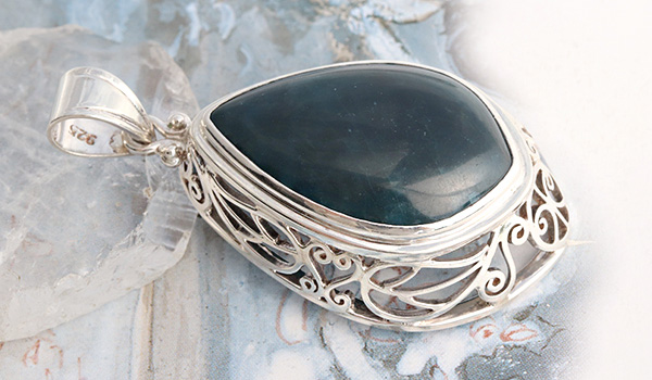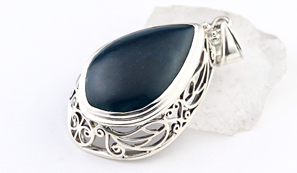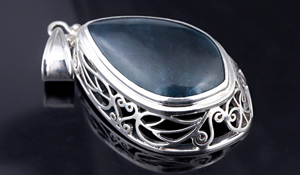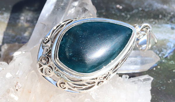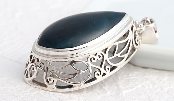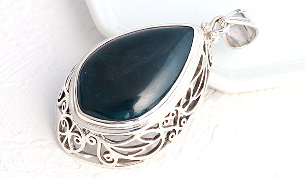 大ぶりのブルーアパタイトから溢れ出す力強いエネルギーと、細かな装飾が組み合わさった神石(カムイ)ペンダント。