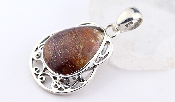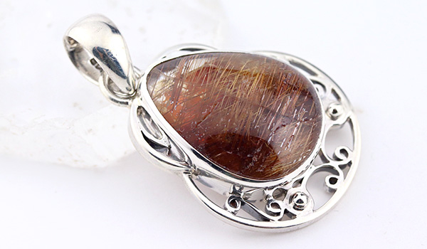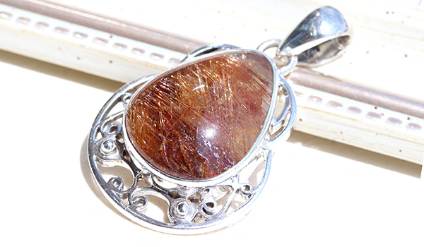 本当に美しいブラウンルチルクォーツのルースを使用したペンダントです。