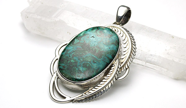 本当に美しいクリソコラマラカイトのルースを使用したペンダントです。