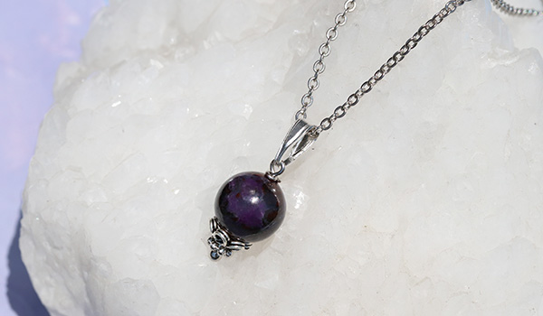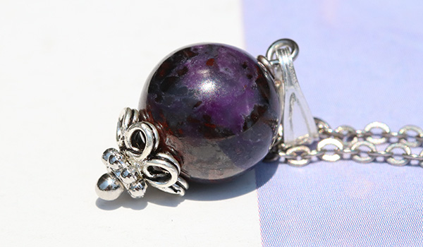 艶やかさも美しいスギライトの10mm珠を使用した、1粒タイプのペンダントです。
