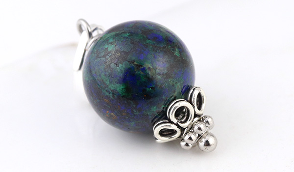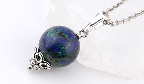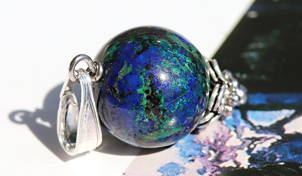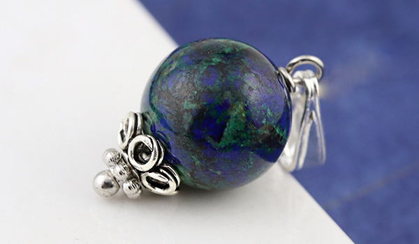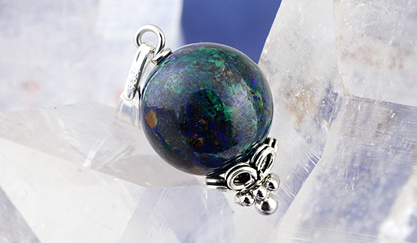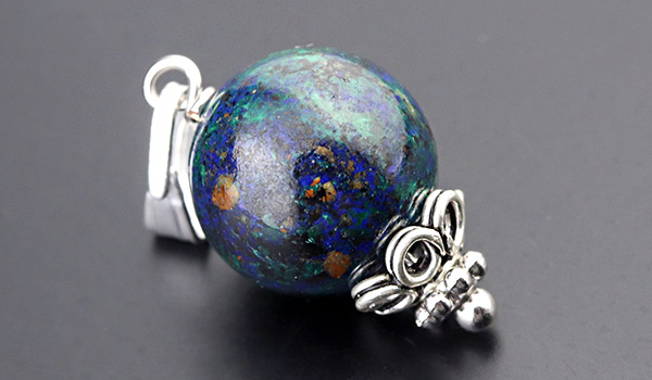 ●まるで宇宙から地球を眺めているような、沈んだ青色をベースに緑色や赤茶色が混じり合ったアジュライトを使用した1粒ペンダント
