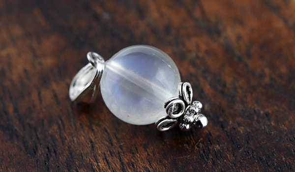 抜群の透明感を持つロイヤルブルームーンストーンの9.5〜10mm珠を使用した、1粒タイプのペンダントです。