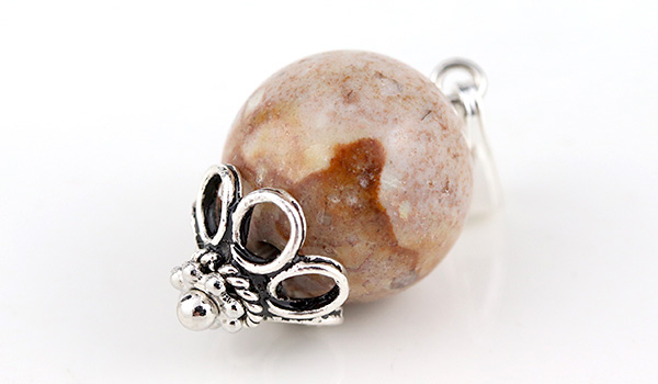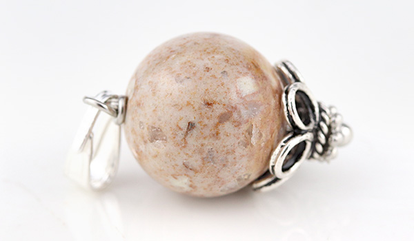 こちらのペンダントには地色はクリームがかった色合いで、その内部には姫川薬石らしい