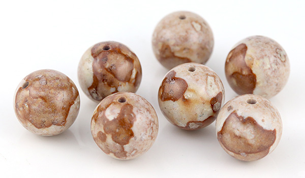 茶色い斑模様がしっかりと入ったビーズを選んでいます。