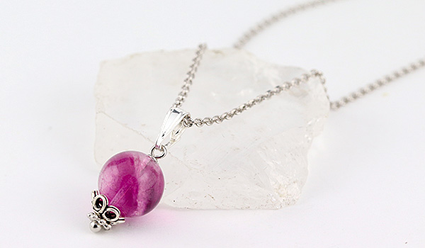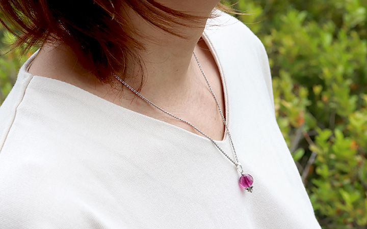 特に人気の高いピンクフローライトの10mm珠を使用した、1粒タイプのペンダントです。