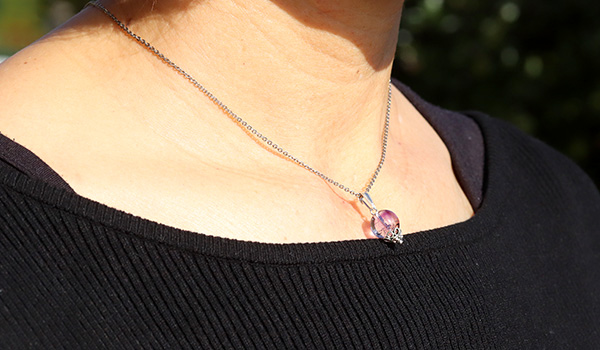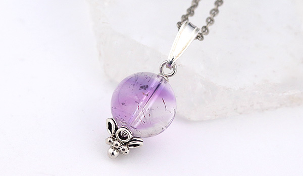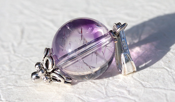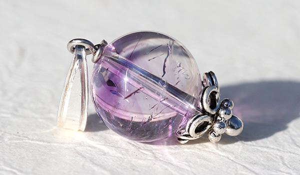 水晶の透き通る透明感の中にアメジストが淡く色をつける、魅惑のカラーグラデーションが美しいアメジストエレスチャルを使用した、1粒タイプのペンダントです。