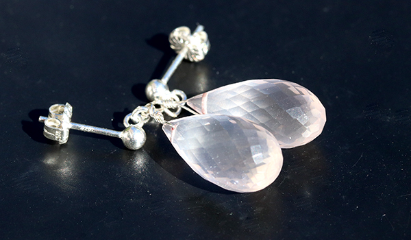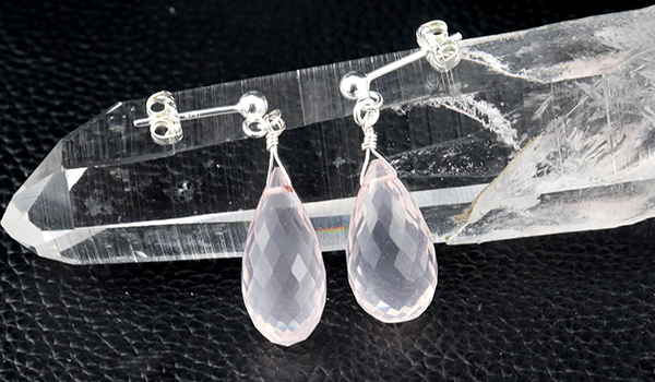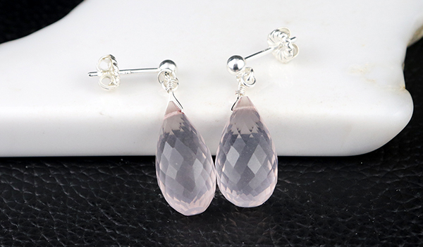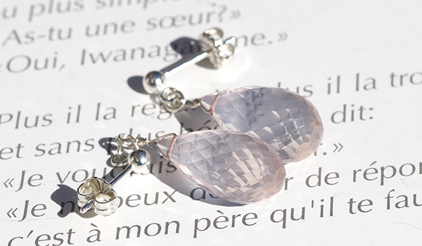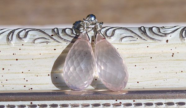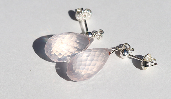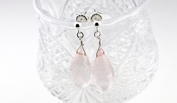ティアドロップカットのローズクォーツを使用したピアスです。