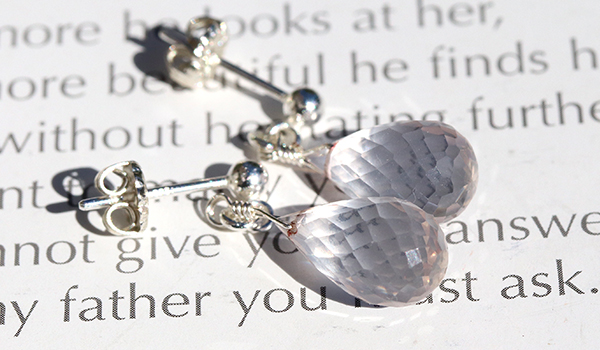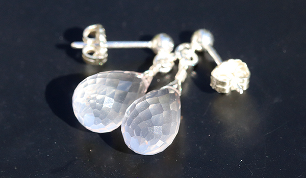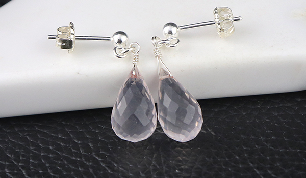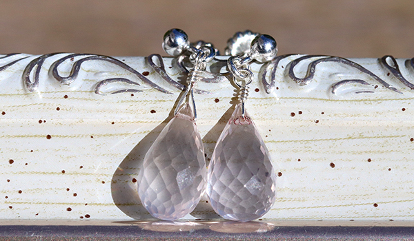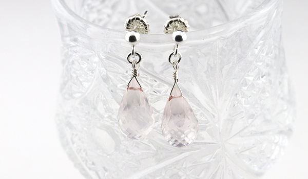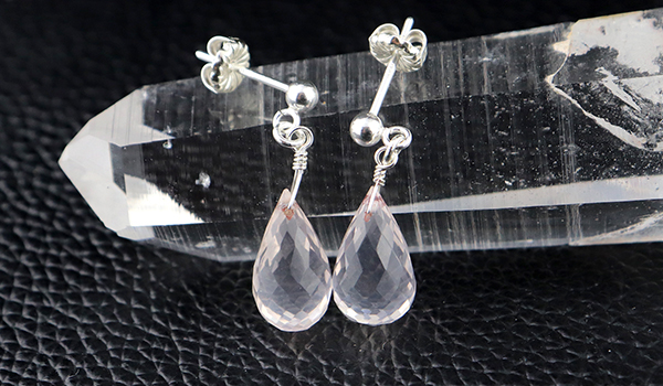ティアドロップカットのローズクォーツを使用したピアスです。