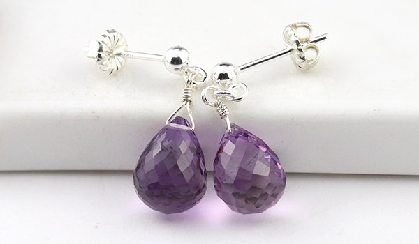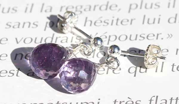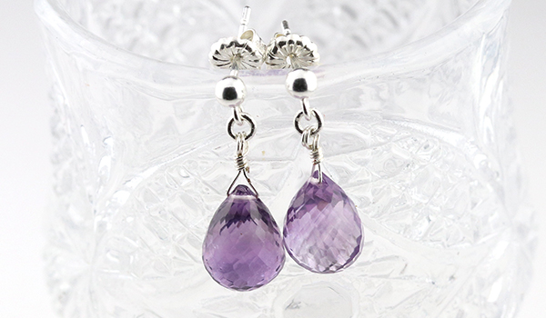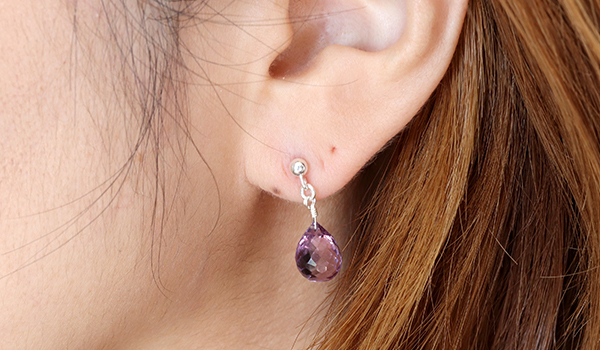 ●2月の誕生石として知られ、宝石としても愛されるアメジストの色合いと輝きに魅了される、アクセサリーとしても美しいシンプルピアス