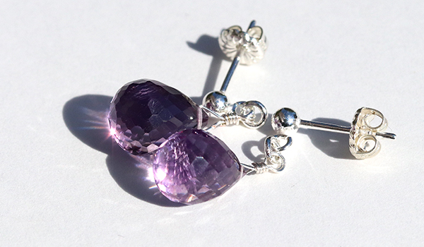 ティアドロップカットのアメジストを使用したピアスです。