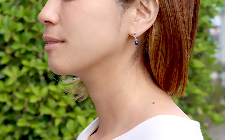 ●カイヤナイトの吸い込まれそうな青の色合いと透明感に魅了される、アクセサリーとしても美しいシンプルピアス