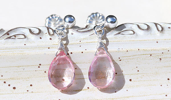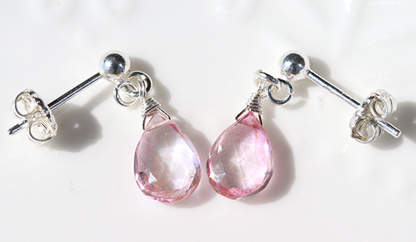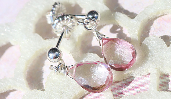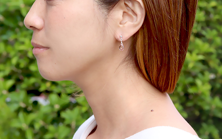 ●ピンクトパーズの透き通るような繊細な色合いと光沢感に魅了される、アクセサリーとしても美しいシンプルピアス