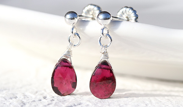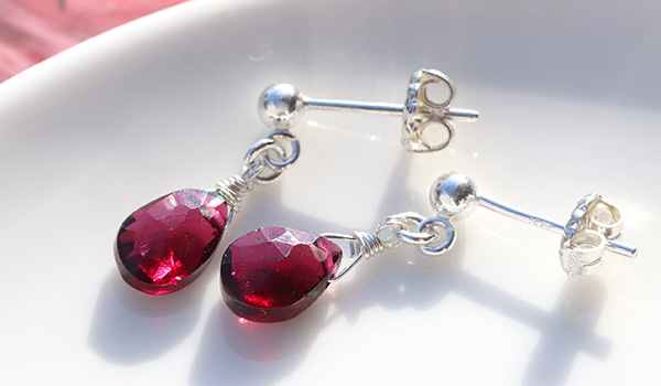 ●ガーネットの深い赤に一目惚れすること間違い無しの、アクセサリーとしても美しいシンプルピアス