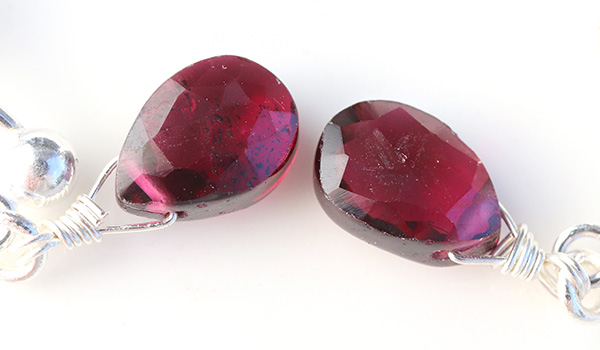 今回は厚みを抑えたフラットドロップカットにすることで、ガーネットの奥深い色の魅力はそのままに、透明感のあるビーズとなっています。