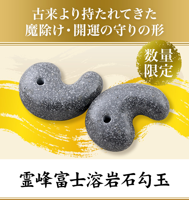内容:霊峰富士溶岩石勾玉1個・ポーチ1個・ギャランティカード1枚