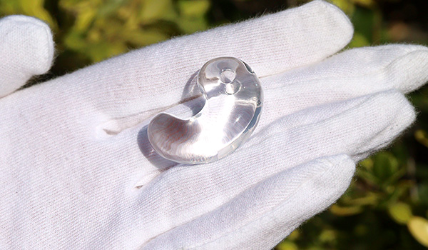 また、この大きさの勾玉を磨き出すためには、それ以上に大きな水晶の原石が必要となりますが、今では鉱山が閉鎖されているために新たな産出はできず、