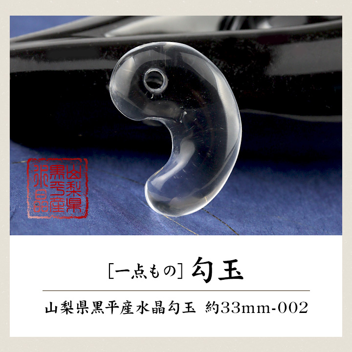 内容:山梨県黒平産水晶勾玉1個、桐箱1個、ギャランティカード1枚