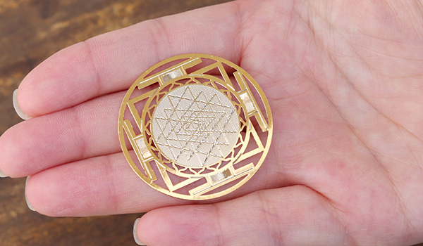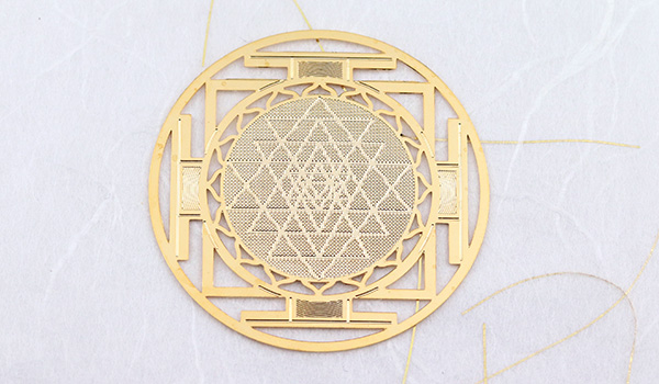 神々の姿を幾何学的に描いた図形と崇められてきたシュリヤントラは、置いた空間に神々が宿る効果があると信じられています。