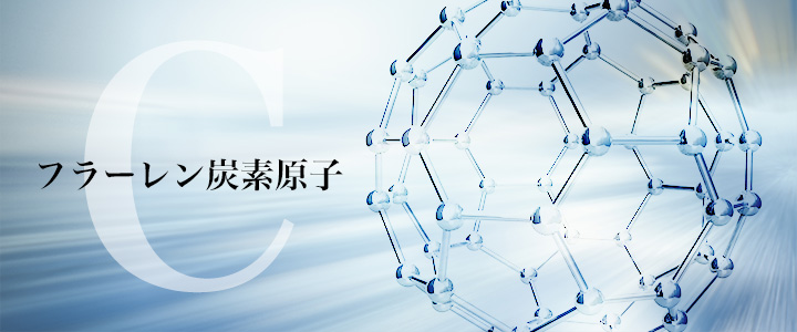フラーレンは炭素原子(C)60個より構成された、まるでサッカーボールのような形をしているC60が代表的で、原子構造は非常に安定していて、中心部は空洞のカゴ型構造となっています。