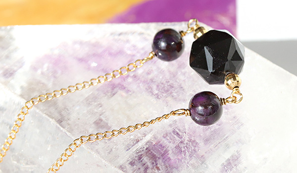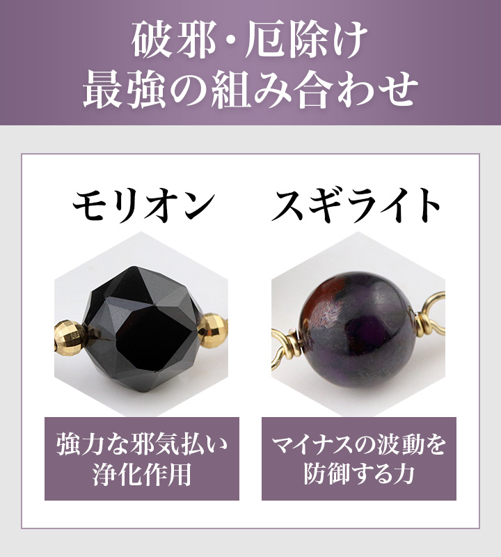 ●邪気や邪心、邪魔、邪道など、あらゆる邪を打破する最強の組み合わせ”スギライト×モリオン”が主役の特別なネックレス