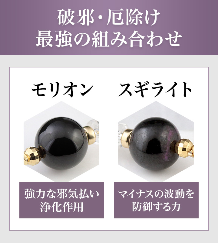 ●邪気や邪心、邪魔、邪道など、あらゆる邪を打破する最強の組み合わせ”スギライト×モリオン”が主役の特別なネックレス