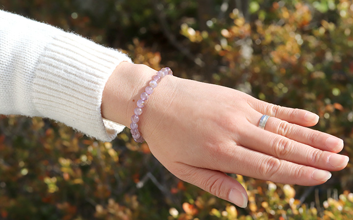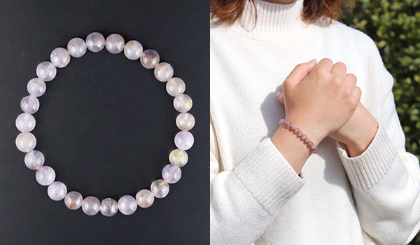 今回、ブレスレットに使用しているマリアライトは、小さめサイズのビーズながら