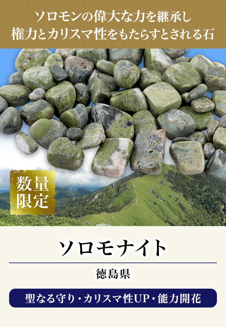 世界でも注目されるミステリーが、今なお語り継がれる神秘の地で育まれたソロモナイトを、ぜひあなたの手元へと導いてみてはいかがでしょうか?