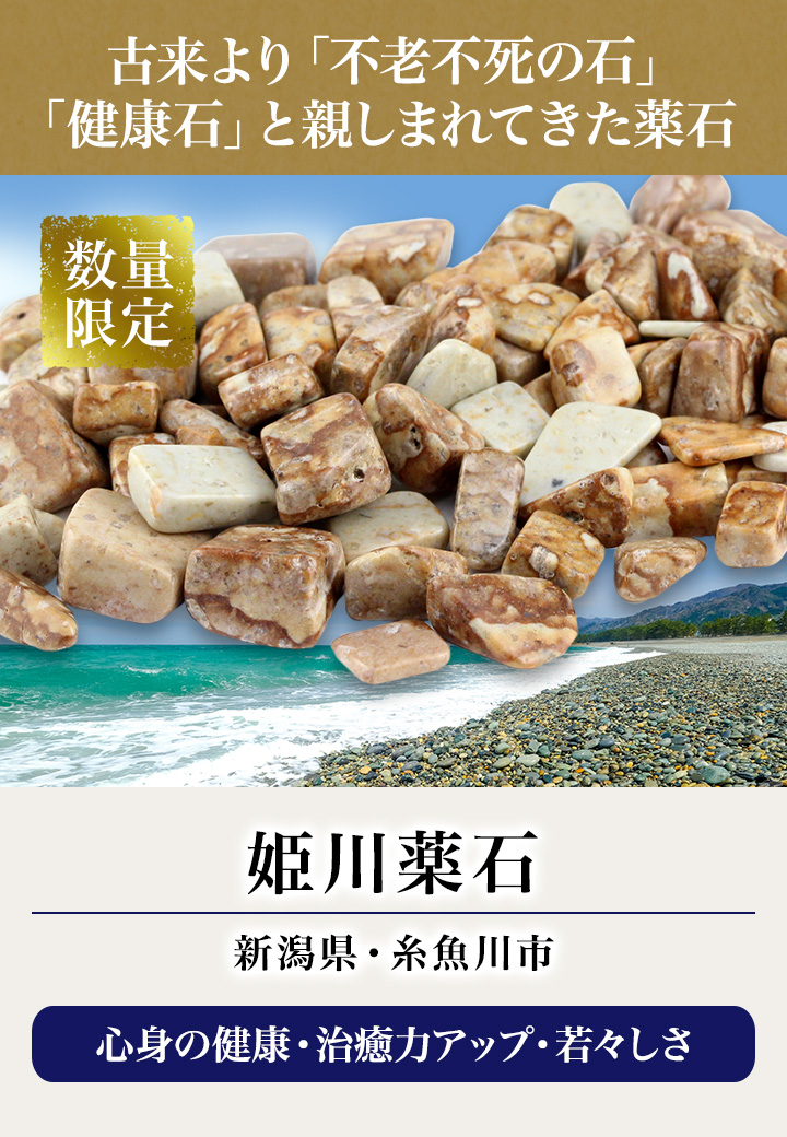 ●古来より「不老不死の石」「健康石」と親しまれてきた姫川薬石