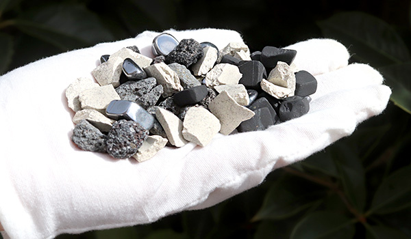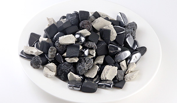 ※シュンガイトは炭素を主成分としている柔らかい石のため、触れると皮膚に黒いススのようなものが付着することがあります。