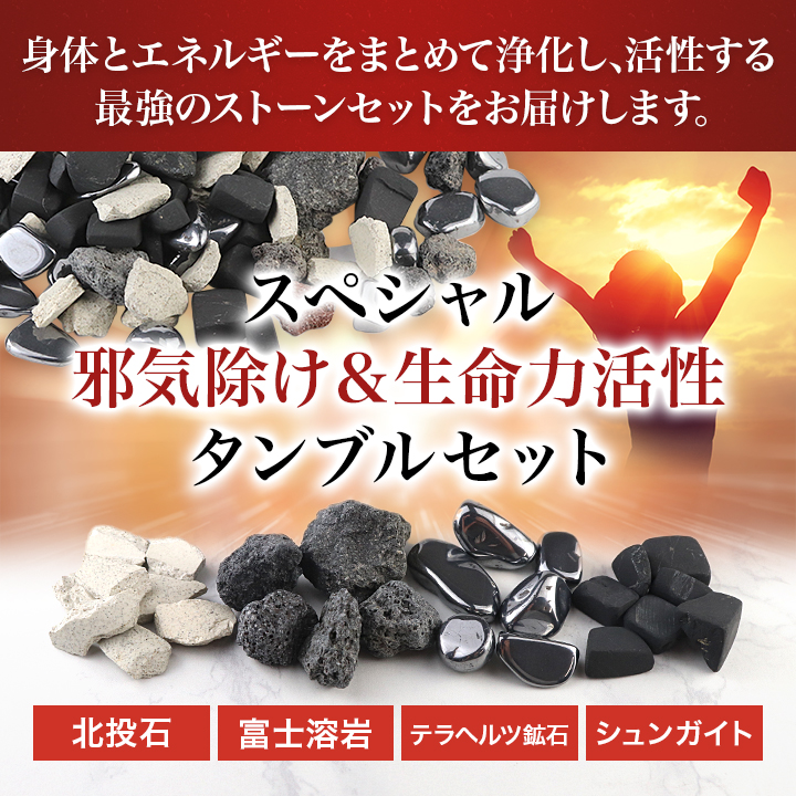 このスペシャル邪気除け&生命力活性タンブルセットは、開運していくための土台をしっかり強固なものにするために、すべての人に使っていただきたいものです。