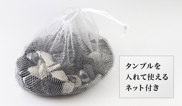 タンブルを入れて使える簡易ネットも付属しますので、ご活用ください。
