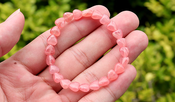 ●入手が非常に困難となったインカローズ!ハートの形が可愛いカットビーズのブレスレットが登場