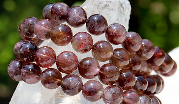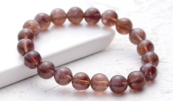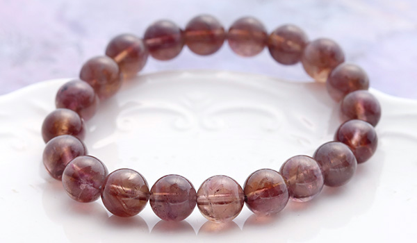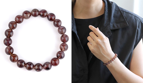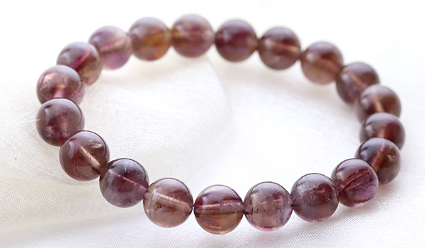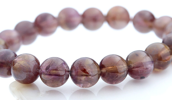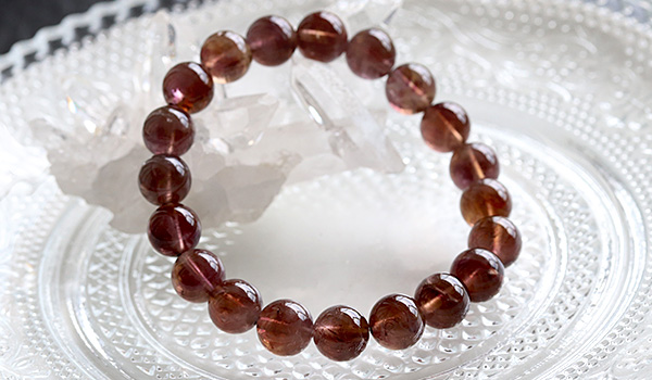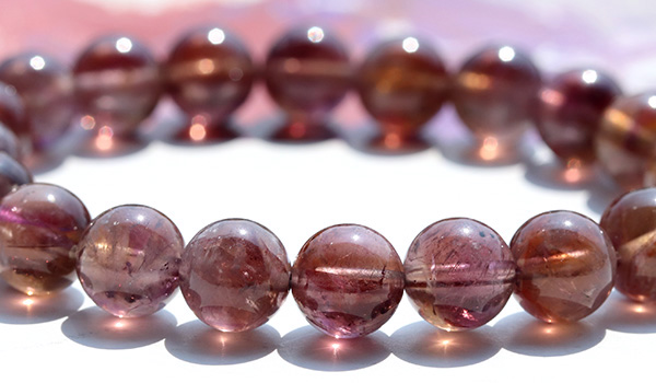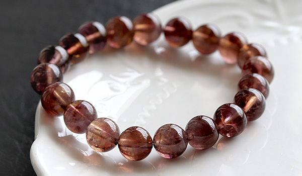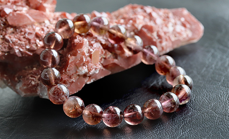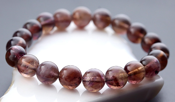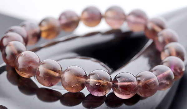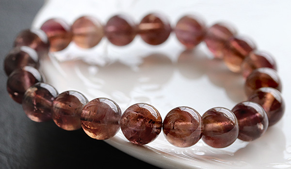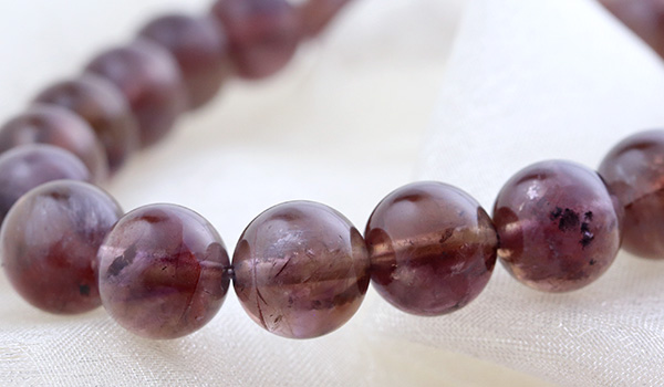 今回入荷できたビーズは、赤紫色と赤茶色、明るい茶色が入り混じったような、不思議な色合いが魅力となったもの。