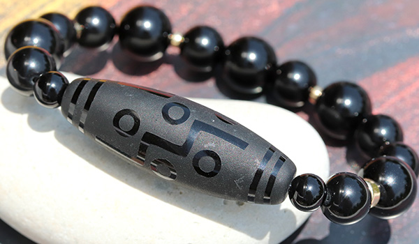 天珠は基本的に、アゲートやカルセドニー、カーネリアンで作られることが多いため、モリオンの天珠を市場で見かけることは