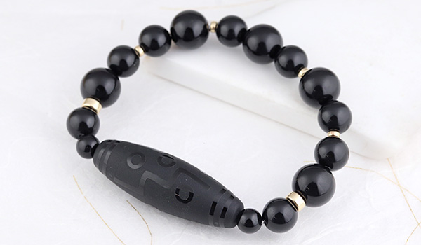 また、所々に挟み込んだゴールドカラーのアクセサリーパーツが、ブラックオンリーのブレスレットのアクセントとなり、