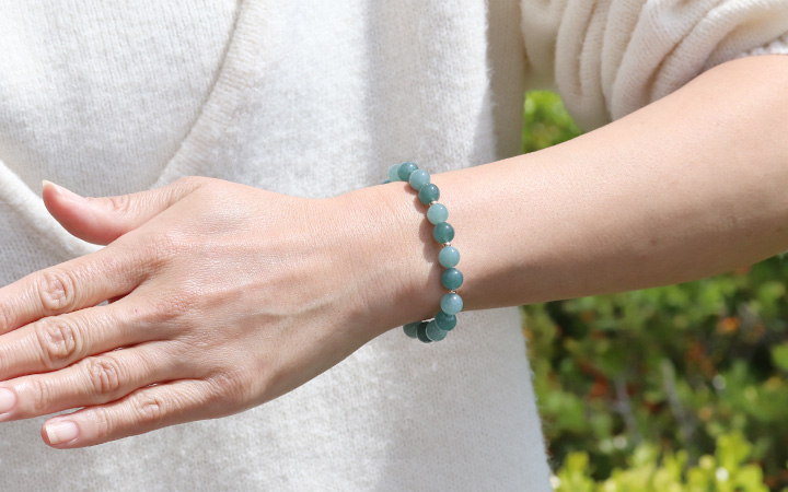 ●世界三大翡翠産地”グアテマラ”から、特徴的なグアテマラブルーの色合いの濃淡が美しいビーズを繋いだブレスレットが登場!