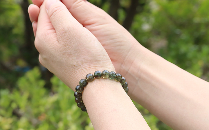 透明感のある結晶をビーズに加工した大変貴重なもので、