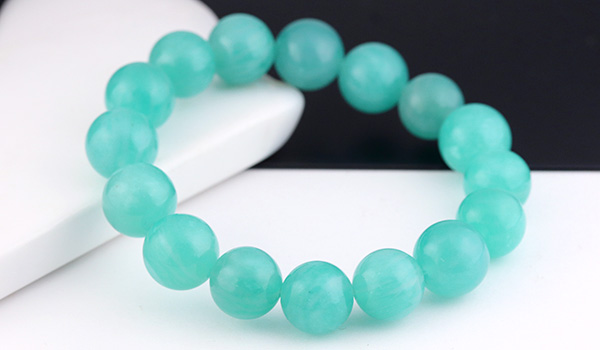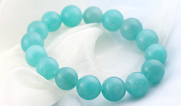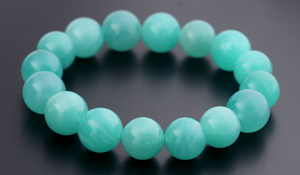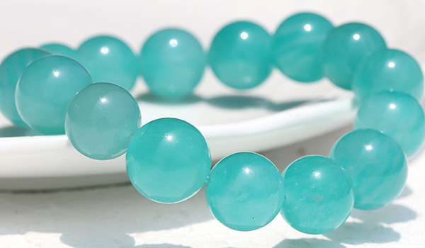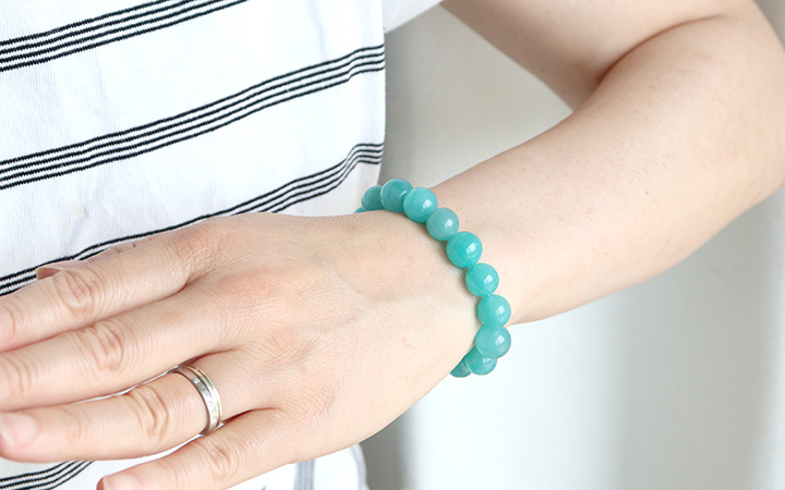 ●太陽光に映えるミントブルーが美しい、モザンビーク産アマゾナイトの10.5〜11.5mmビーズを使用したブレスレット