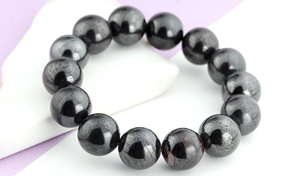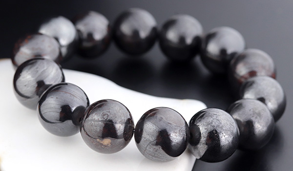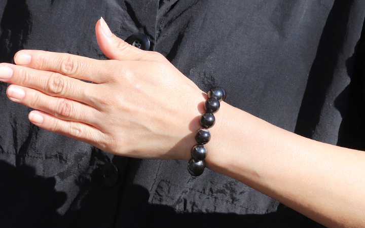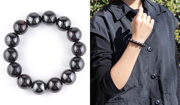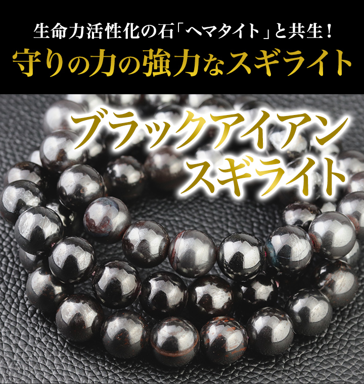 スギライトは紫色の石というイメージがガラッと変わる黒というより濃い灰色で、表面には鉄を思わす鈍い光沢が見られる、アイアンスギライトの10mmを超える大粒ビーズを使用したブレスレットが、