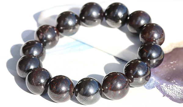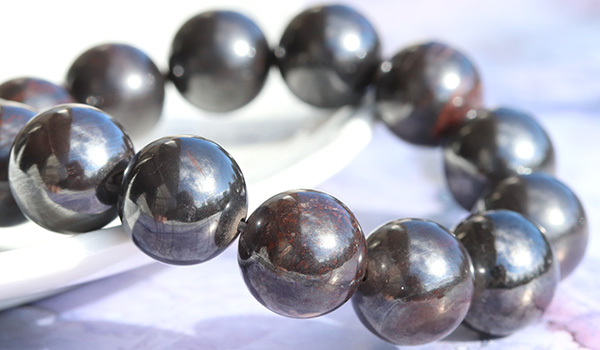 ヘマタイトの含有量によって、模様があまりない漆黒に近いものや、ヘマタイトの光沢感が強いもの、模様が強く出ているものなど、様々な個体差がございます。