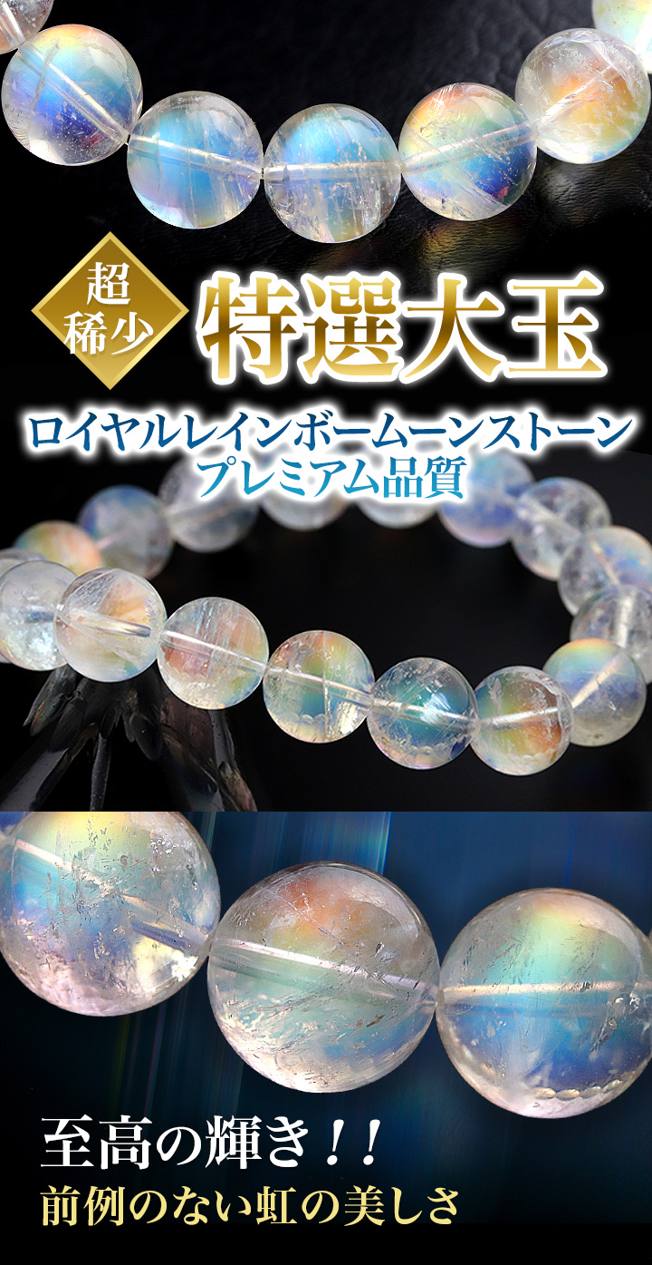 ここまで美しいビーズだけを厳選したロイヤルレインボームーンストーンのブレスレットであれば、その希少価値は驚くほどに高いものとなります。