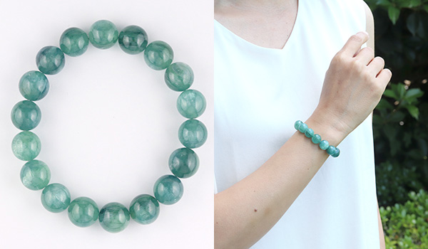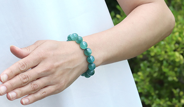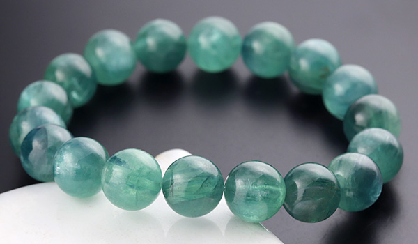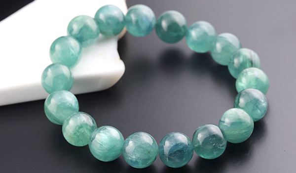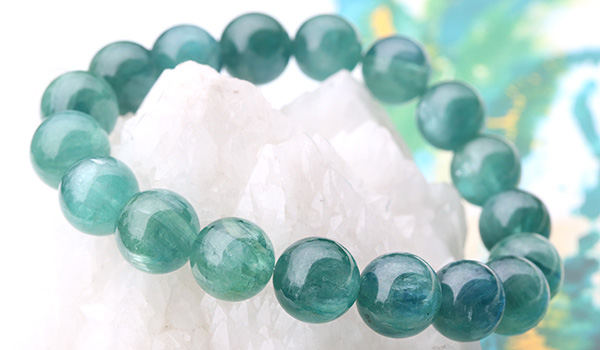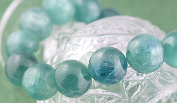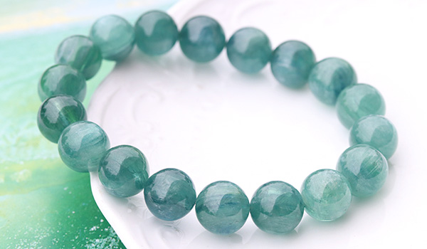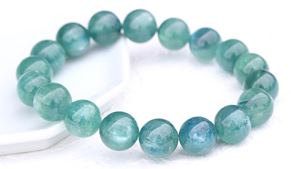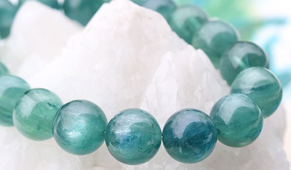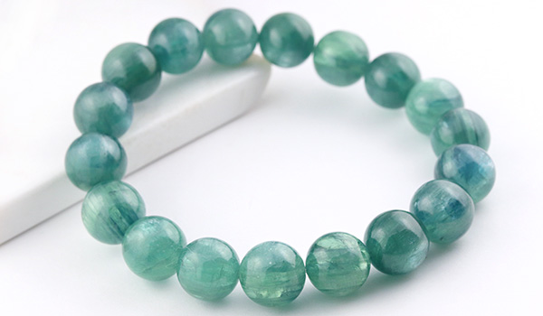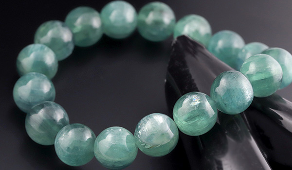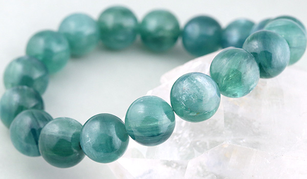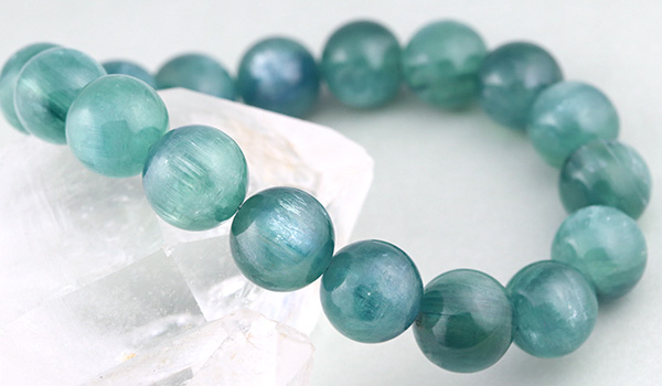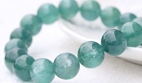 産地が限定されるために、非常に希少なグリーンカラーのカイヤナイトの11.5〜12mm玉を使用したブレスレットが、