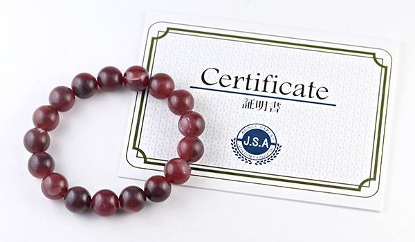 こちらのブレスレットには、日本産の鉱物であることを保証する