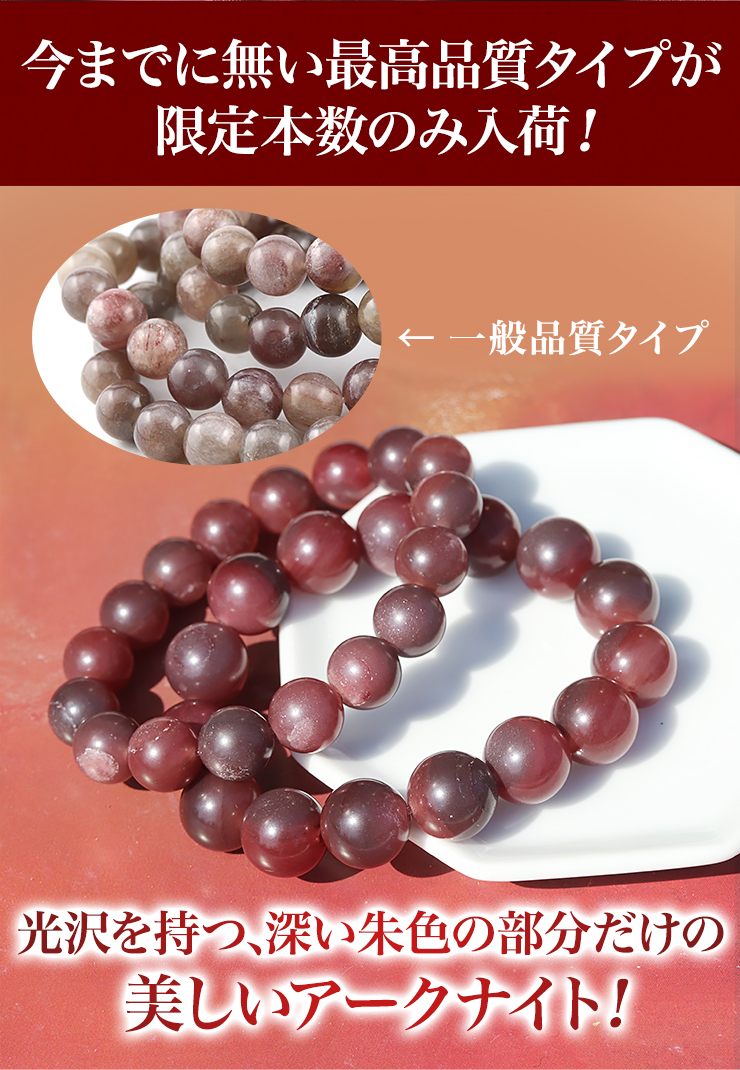 稀少石のため、ビーズ表面に自然由来の傷や凹みがある珠も、弊社基準を満たしているものは使用しております。あらかじめご了承の上お買い求めくださいませ。