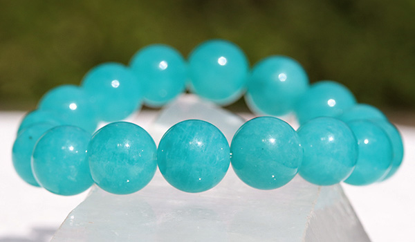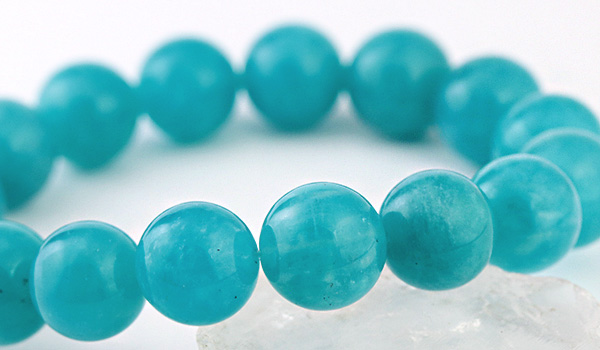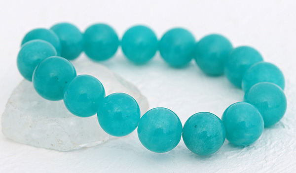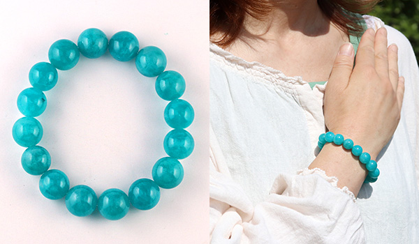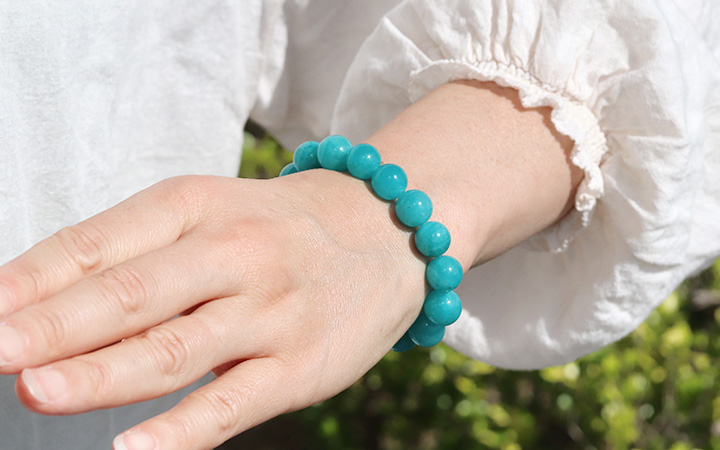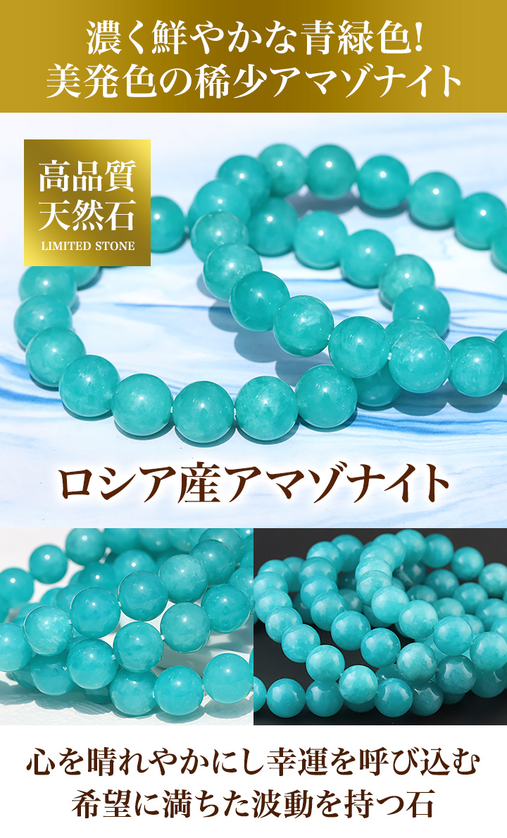 ●目にも鮮やかな青緑色が印象的なロシア産アマゾナイトを使用したブレスレットが、数量限定入荷!