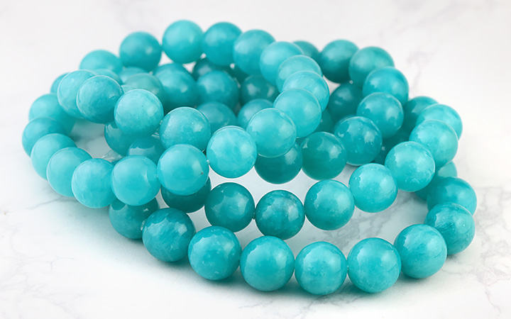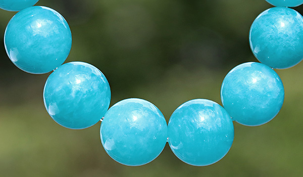 アマゾナイトは産地によって発色や模様の違いが現れるという特徴があり、ペルー産のアマゾナイトは爽やかなミントブルーなのに対し、ロシア産のアマゾナイトは