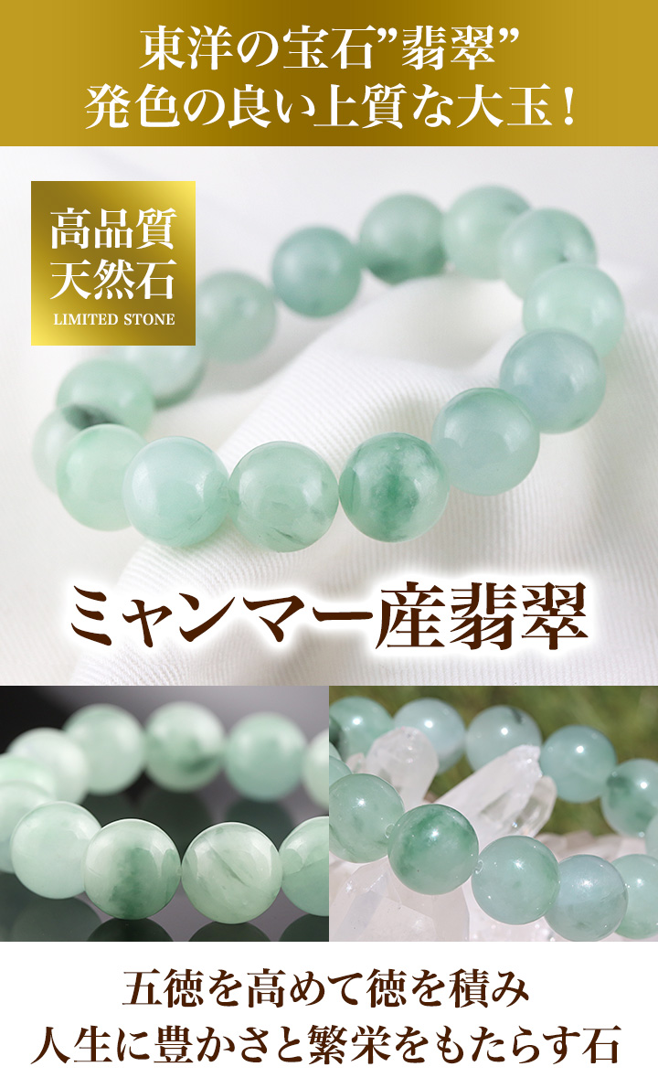 良質な翡翠の産地として知られるミャンマーから、心を和ませる淡いグリーンの色合いにほのかな透明感も感じられる