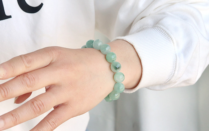 ●発色の美しさにほのかな透明感も美しい、ミャンマー産翡翠の12mm珠を使用したブレスレット