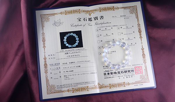 今回、ブルームーンストーンを入荷するに当たり鑑別に出しましたところ、こちらのブルームーンストーンは「